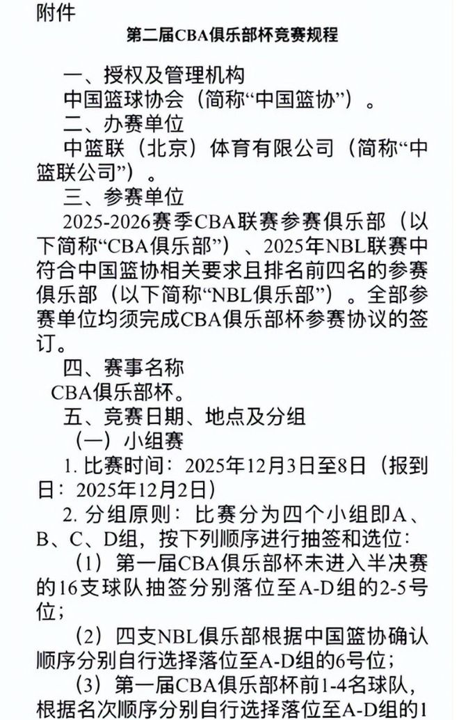 北京时间9月23日,CBA联赛休赛期传来多个消息。首先第一个消息和俱乐部杯有关,中国篮协官方最新公示,第二届CBA俱乐部杯赛计划在2025年12月3日至2026年2月12日期间展开,参赛球队包括20支CBA球队,以及四支在NBL联赛中排名最靠前的球队。