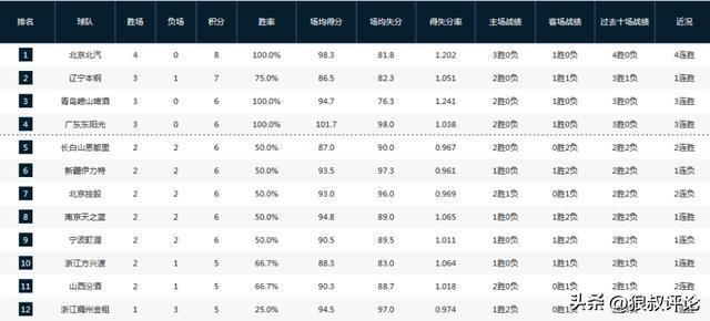 CBA最新排名:北京4连胜冲上第1辽宁险被爆冷,四川创尴尬纪录