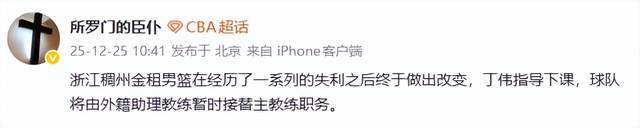 - 熬了5轮之后,浙江男篮终于还是顶不住了,让丁伟指导下课了!这是本赛季第三位下课的主教练了,眼瞅着浙江男篮战绩...发表于: 12-25 19:44