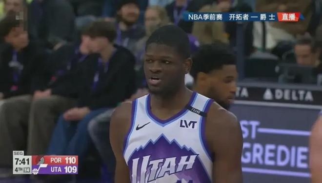 今年季前赛,班巴为爵士出战了一场比赛,对阵开拓者比赛中上阵不到9分钟,便砸出8分3板2助1帽全面数据。