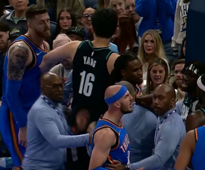 北京时间11月24日,在开拓者对阵卫冕冠军、联盟第一的雷霆比赛,杨瀚森获得登场机会,他还在第二节命中个人NBA生涯首记三分创纪录。在吕佩尔与哈尔滕施泰因爆发冲突时,杨瀚森从背后拉走暴怒的哈尔滕施泰因劝架。