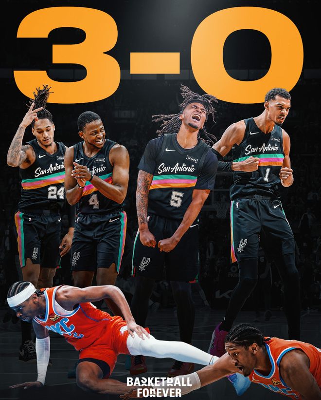 2.马刺也是本赛季目前唯一一支连胜雷霆的球队;