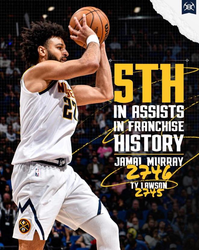 北京时间1月5日,NBA常规赛掘金客场对阵篮网,掘金缺少约基奇等多位主力,戈登、布劳恩与波特迎来复出。穆雷27+16助攻创生涯单场助攻纪录,且生涯助攻升至队史第五位迎来里程碑,引领