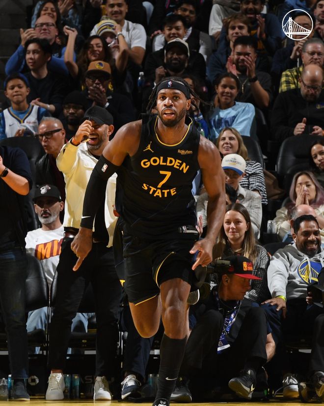 勇士队的波兹姆斯基得到24分、6个篮板和4次助攻,库里得到19分和11次助攻,巴特勒得到17分和4次助攻,他在第三节伤退。希尔德得到16分和4个篮板,普斯特得到15分和9个篮板,穆迪得到13分和4个篮板,霍福德得到10分和8个篮板,勇士队连续四场投中至少20个三分球,这追平联盟纪录。热火队的鲍威尔得到21分,维金斯得到18分和5个篮板,冯特奇奥得到13分和8个篮板,威尔得到15分和4个篮板,哈克斯得到10分、5个篮板和9次助攻,阿德巴约得到4分和12个篮板。