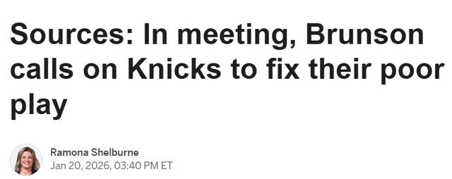 北京时间1月21日,据ESPN消息人士透露,纽约尼克斯队当家球星杰伦-布伦森在球队于主场惨遭独行侠队血洗后,召集球员召开了一次闭门会议。多位消息人士称,球队在11场比赛中输掉9场,