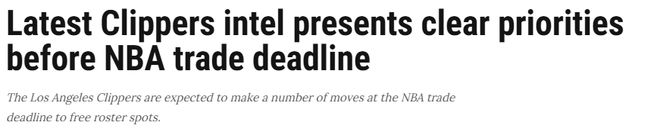 - 北京时间1月22日,据快船队记阿扎利报道,快船在交易截止日前的核心目标之一,是腾出足够的阵容名额和薪金空间,将...发表于: 01-22 11:41