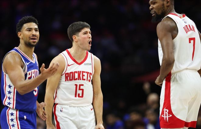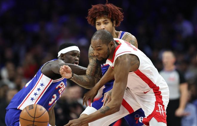 休斯顿火箭客场挑战费城76人,两队鏖战至加时才分出胜负,航天城末节一度领先9分,却最终兵败富国银行中心。其实,末节领先却输球还不是最可惜的,原本比赛都打不到加时,杜兰特封盖马