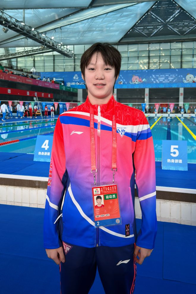 2011年出生的周彦君在本届全运会上获得女子4X200米自由泳接力第六名和女子400米个人混合泳第七名。