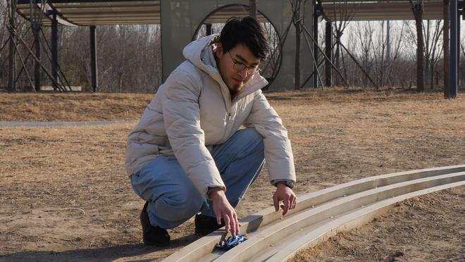 2022年“五一”假期,兼具大地装饰作用与实用功能的赛道悄然落成。不过,它长得和导水槽太像了,游客们也不知道它真正的用途,从建成到2024年年底一直默默无闻。要不是2025年1月,王维琦在网上发了条视频介绍这个赛道的设计,恐怕它还会一直沉默下去。2025年一整年,陆续有市民来温榆河公园玩四驱车,当年年底,一位博主发现了这里,并在网络上传播发酵,这条赛道彻底火了。