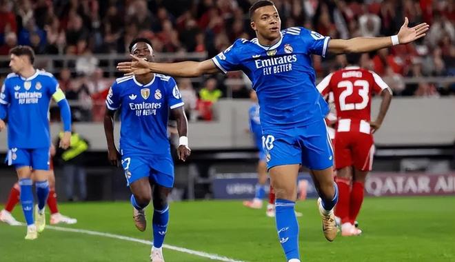 在欧冠赛场上,皇家马德里客场对阵奥林匹亚科斯,姆巴佩上演大四喜,帮助球队4 - 3险胜对手,终结了三场不胜的颓势。比赛开始后,奥林匹亚科斯的奇基尼奥率先破门。但姆巴佩在第22分钟扳平比分,随后在第24分钟和第28分钟连入两球