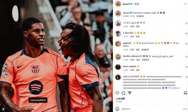 直播吧9月19日宣 巴萨在本轮欧冠焦点战2-1力克纽卡斯尔,孔德首发表现出色。第58分钟,孔德接到队友传球,在右路送出传中,禁区内拉什福德头球破门。他也在赛后通过社媒晒出同拉什