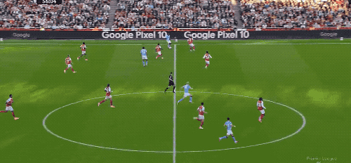第55分钟,多库送出妙传,哈兰德没有传给福登,而是自己射门,拉亚扑救过后,埃泽的解围打在赖斯的身上,差点自摆乌龙。