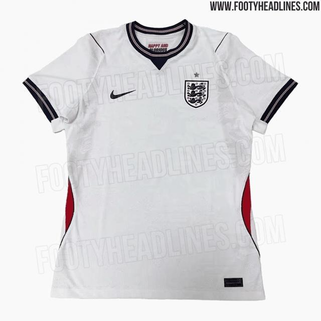 英格兰队新款主场球衣采用了经典的白色底色,搭配细腻的提花图案、肩部的海军蓝镶边以及两侧带有海军蓝边缘的红色插片。球衣领口内侧印有“HAPPY AND GLORIOUS(英国国歌《天佑女王》里的歌词,译为孚民望,心欢畅)”的标语,而队徽上方的一颗金色星星则纪念了1966年世界杯冠军。