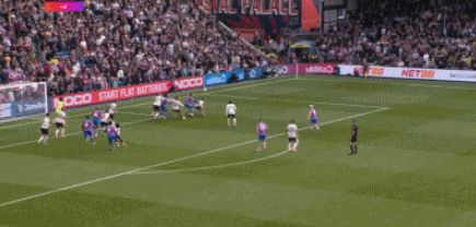 这是水晶宫的界外球,恩凯蒂亚乱战破门。VAR介入,认定进球有效,水晶宫2-1绝杀利物浦。水晶宫球员和球迷狂欢庆祝!