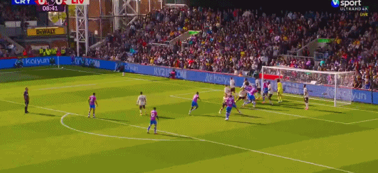 水晶宫的角球,镰田大地罚到后点,赫拉芬贝赫的头球解围却形成传球,萨尔近距离抽射破门,利物浦0-1落后。
