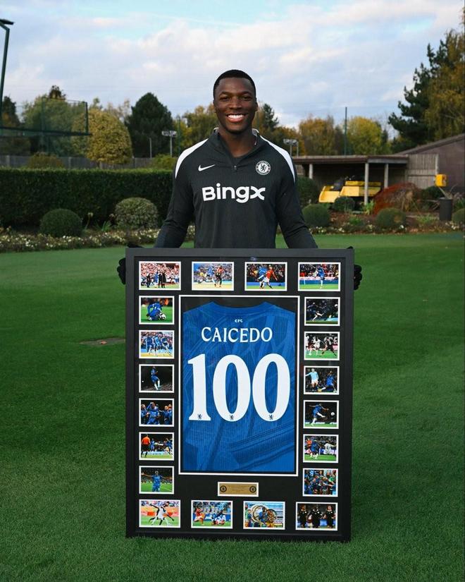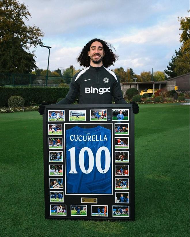 切尔西官方发布照片,俱乐部向达成蓝军生涯百场里程碑的五名球员赠送了纪念礼物。恩佐、凯塞多、帕尔默、查洛巴和库库雷利亚等五名球员已经代表切尔西在各项赛事出场超过了10