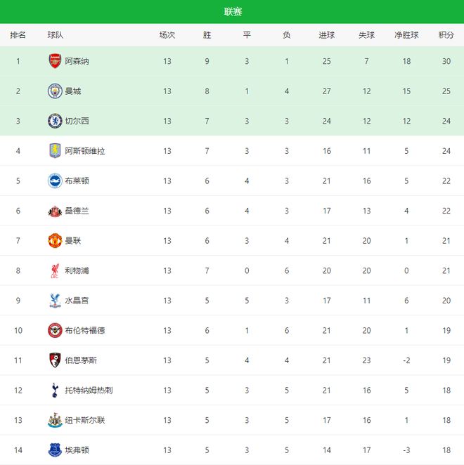 切尔西11阿森纳!利物浦20!英超最新积分榜维拉曼联逼近前三