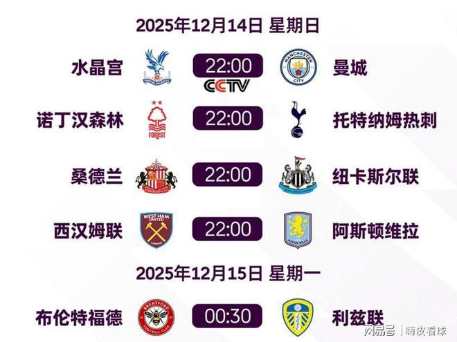 周末,英超第16轮展开争夺,周日一共安排了5场比赛,除了阿森纳之外,前四名的球队悉数亮相。维拉冲击11连胜的古老纪录,曼城则随时等待反超阿森纳,央视周末将直播两场豪门的比赛,敬请