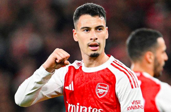 上半场结束,阿森纳2-1暂时领先。下半场开始仅仅6分钟,热苏斯就助攻马丁内利梅开二度。第72分钟,马丁内利上演帽子戏法。