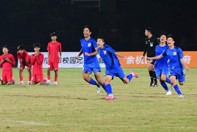 上海申花U14门将吴彦南发挥神勇,将对方第一轮的点球扑出。第三轮,大区青训中心U14球员主罚的点球击中立柱弹出。第四轮,上海申花U14点球命中,比赛结束了!最终,上海申花U14经点球大战6:3击败大区青训中心U14,举起首届钱潮杯冠军奖杯。