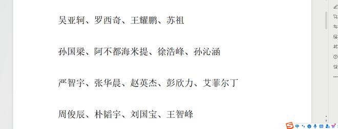 包括吴亚轲、王耀鹏、孙国梁、阿不都海米提、严智宇、赵英杰、朴韬宇、王智峰、罗西奇、苏祖。