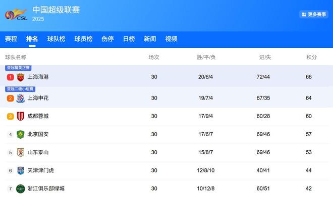 - △点击上图查看详情今天下午,2025赛季中超第30轮比赛开启,上海海港在客场1比0击败大连英博,上海申花在客场3比1...发表于: 11-23 19:42