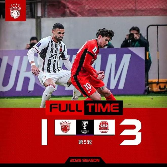 11 月 25 日,亚冠精英联赛首阶段第 5 轮角逐,刚成功卫冕中超联赛冠军不久的上海海港队在主场以 1 比 3 不敌韩国首尔 FC 队,从而遭遇赛事三连败,并继续垫底积分榜。上海海港队上次赢球还是 2024 年 11 月 26 日,他们在客场以 3 比 1 击败韩国蔚山 FC 队,之后 10 场比赛战绩仅为 2 平 8 负。